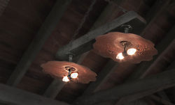 Standout Features: Cypress columns, exposed roof framing, tin roof. An aging process was used on the concrete floor to create a worn and pitted look. Leftover materials and farm implements, found on site, were used as inspiration and materials for all furniture and accent lighting found in the pavilion.