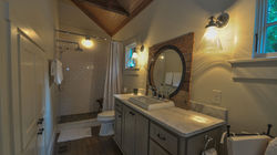 Standout Features: Timber, stone, cedar shake, juniper log columns, galvanized aluminim roofing, beadboard ceiling, light pine panel interior walls, natural timber stair rail, zinc island counter top and clawfoot iron bath tub.