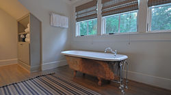 Standout Features: Reclaimed pine floors, copper roof, horizontal interior wood walls, custom color stain finishes, custom cabinetry and closets, LED lighting and heart pine beams.