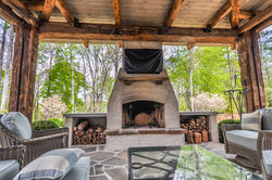 Project Scope: To build a covered arbor using giant reclaimed timbers. Rock terrace was also extended and a mortar washed brick fireplace was added. Collaboration with homeowners and architectual renderings from Sloan Flournoy.
